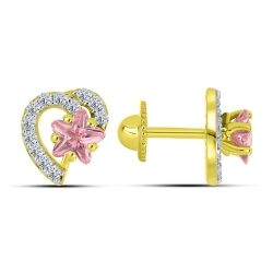 Cercei p-u copii din aur galben cu pietre Cubic Zirconia Roz, Cubic Zirconia Incolor
